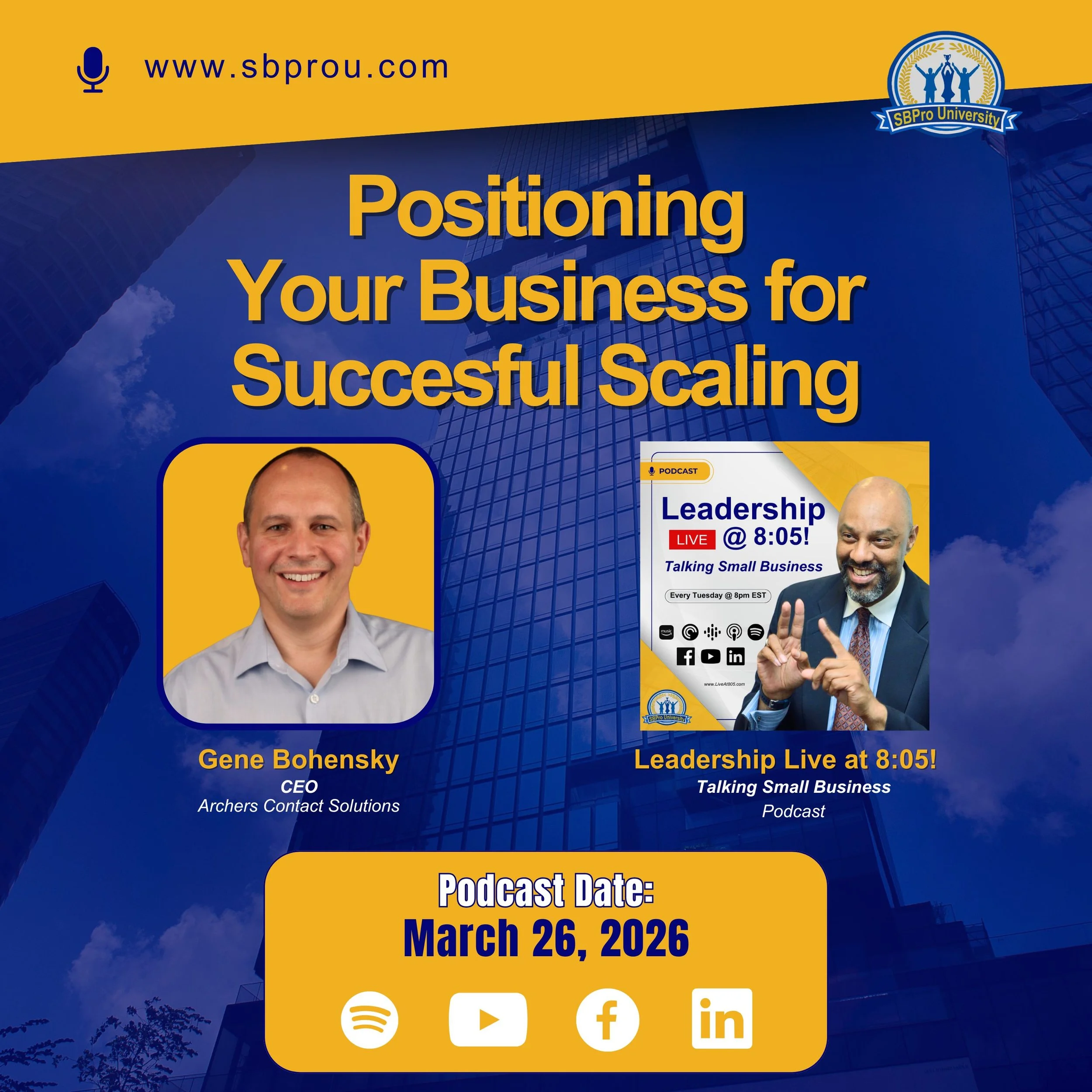 Also, you don’t want to miss our new Podcast on Thursday morning with Gene Bohensky on Positioning your Business For Successful Scaling